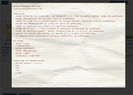 El portfolio está programado en ActionScript 3.0 sobre Adobe Flash CS4 y XML.