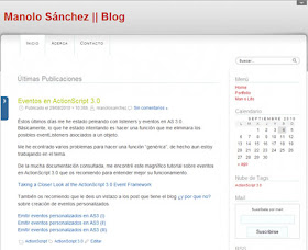 Desde ahí podréis acceder al portfolio del que os he estado hablando estos días, así como a un blog con novedades, experimentos, investigación etc. de mi profesión y sobre todo de ActionScript 3.0, el lenguaje principal que uso actualmente para programar.
